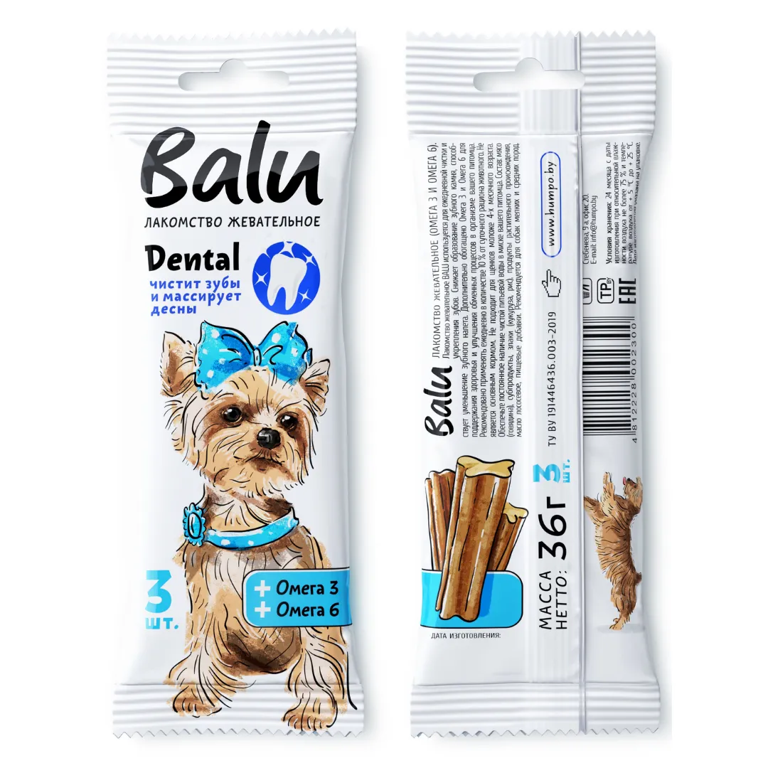 Лакомство жевательное BALU используется для ежедневной чистки и укрепления зубов. Снижает образование зубного камня, способствует уменьшение зубного налета. Дополнительно обогащено Омега и Омега 6 для поддержания здоровья и улучшения обменных процессов в организме вашего питомца.