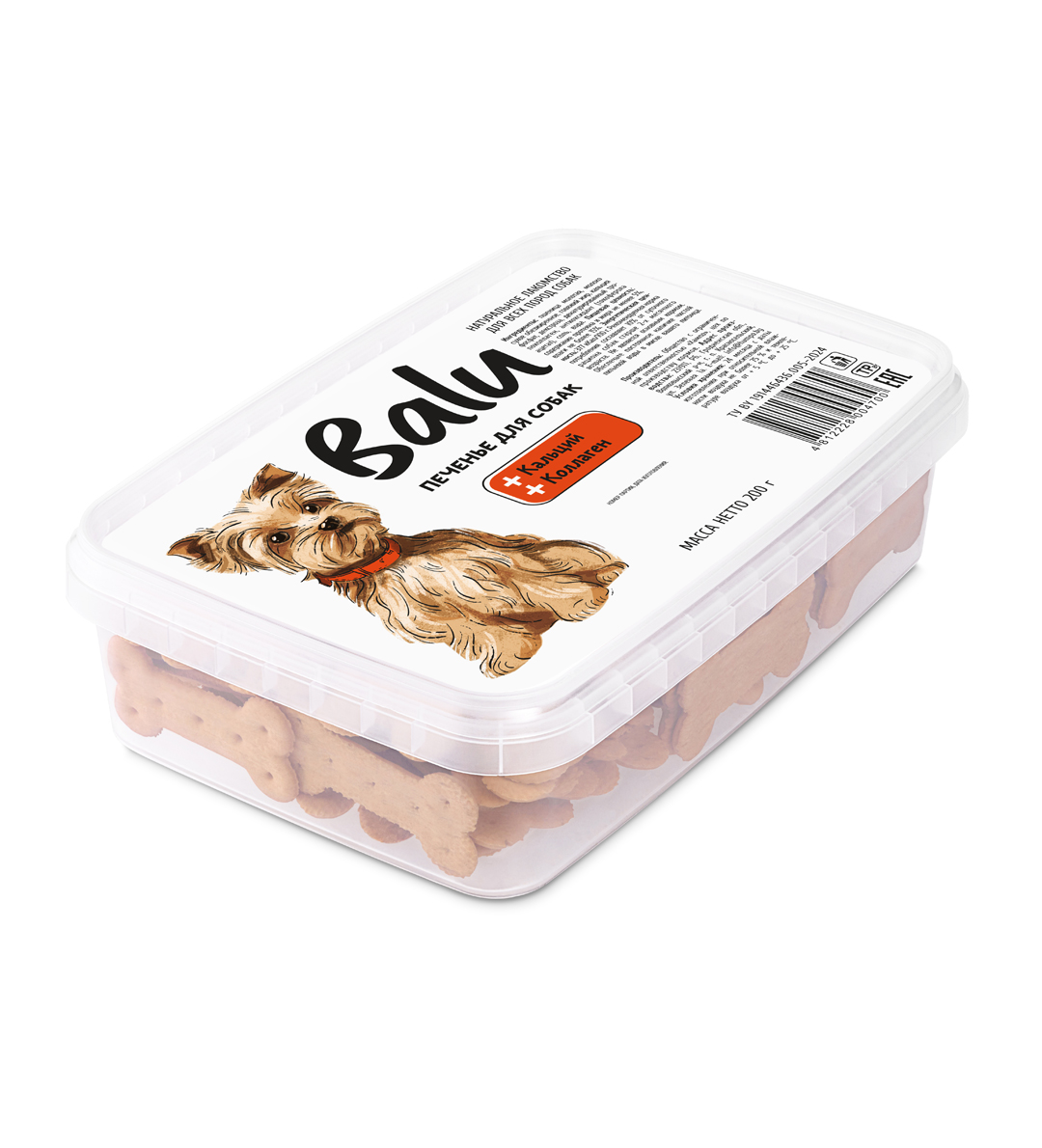 Печенье для собак BALU кальций, коллаген, 200гр. Натуральное лакомство для всех пород собак. Кальций и коллаген в составе печенья способствуют укреплению сосудов, поддержанию костной ткани и зубов, повышают выносливость.